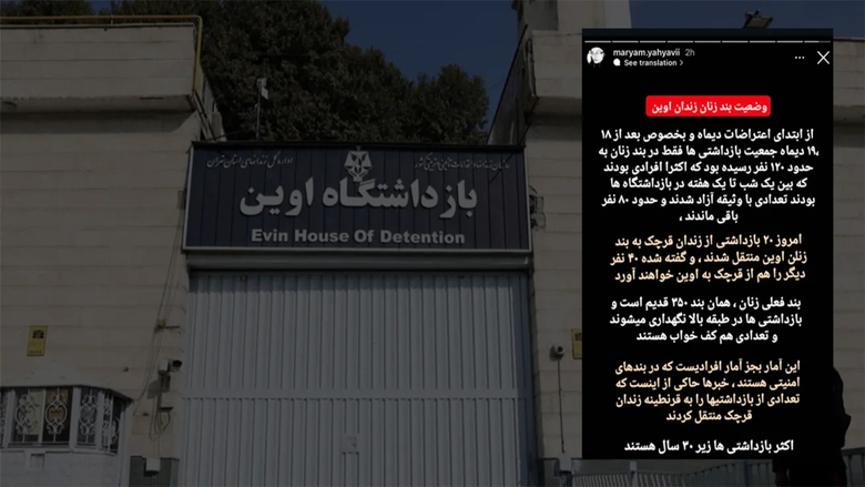 12:19 - 22 رێبەندان 2725بەندکراوانی سیاسیی بەندی ٧ی بەندیخانەی ئێڤین هێرشیان کرایە سەر