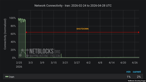 در بهروزرسانی روز سهشنبه این نهاد آمده است که این وضعیت از ۲۸ فوریه (۹ اسفند ۱۴۰۴) آغاز شد؛ زمانی که دسترسی به اینترنت جهانی در ایران بهطور گسترده قطع شد.