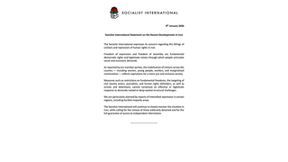 بیانیهی انترناسیونال سوسیالیست در مورد تحولات اخیر در ایران