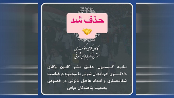 Daxuyaniya komîsyona Mafê Mirovî ya Navenda Parêzerên dadgusteriyê li parêzgeha Tewrêzê li derheq rewşa koçberên Kurd ên Başûrê Kurdistanê, ku rastî bertek û dijkiryara micid a gelek rêkxistinên medenî û mafê mirovî û parêzeran hatibû, bi neçarî û bi bê evê ku çi rohnkirinekê bide, hate reşkirin.