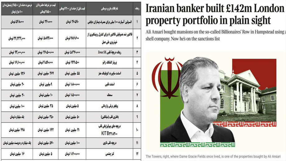 Ev yeka li halekê de ye ku rêjîma Îranê li sala 2025 de zêdetir ji milyardek Dolar Alîkarî daye Hizbullahê û berpisê banka Ayende yê bi navê Elî Ensarî zêdetir ji 100 milyon Pond li Birîtaniyayê de milk bi dirafê dizî yê xelkê Îranê kiriye û ti lêpirsînek jî ji wî nehatiye kirin.