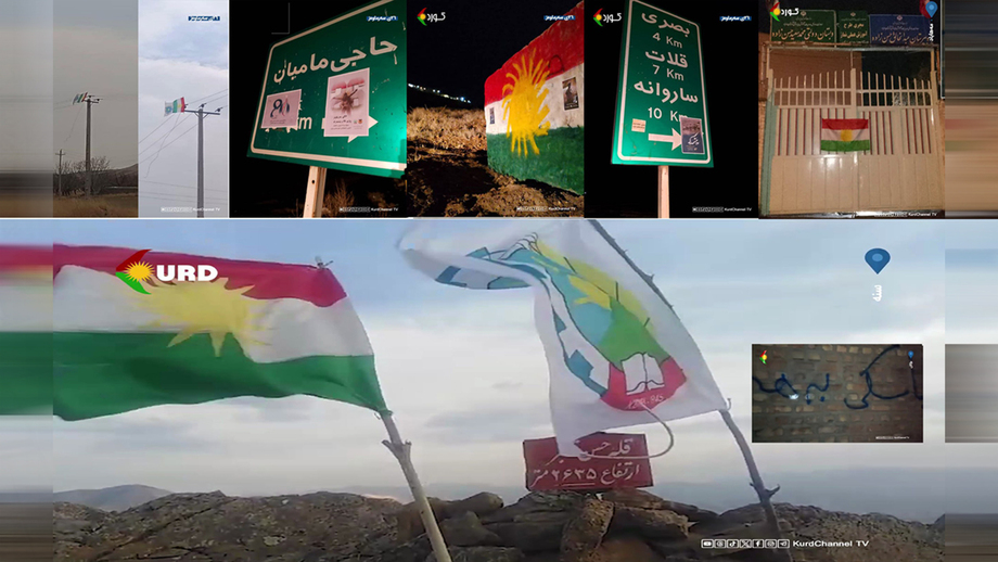 Li berdewamiya wan çalakiyê teblîxî de li bajarê Sinê, Logoya Hizba Dêmokrat û Alaya Kurdistanê jî hatine bilindkirin.