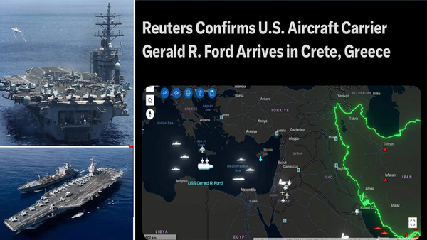 Gemiya balafirhilgira “USS Gerald Ford” a Amerîkayê ku mezintirîn û pêşkevtîtirîn gemiya balafirhilgir a Hêza Deryayî ya Amerîkayê ye, li rêya xwe bo aliyê Rojhilata navên ve ji avên Îtaliyayê û li girava “Kirît” ku mezintirîn girava Yûnanê ye, derbas bûye û digel çendîn navên şerkere din ber bi avên Îsraîlê ve diçe.