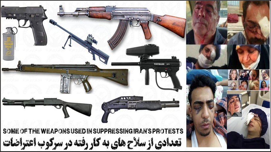 Hêzên hov ên rêjîmê bilî teqe kirin bi çavên xwenîşanderan, bi çekên saçmeyî li mewdaya gelek nêzîk ve teqe bi serê xwenîşanderan kirine ku bûye sedema cudabûna beşek ji serê wan ku li hinek girtevîdyoiyan de hatine dîtin.
