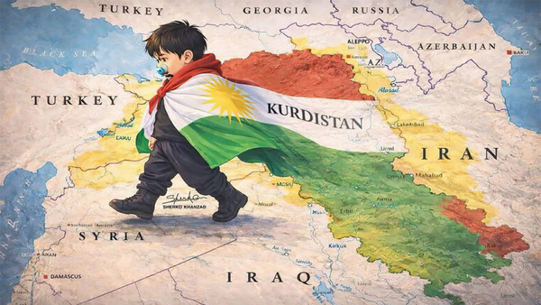 Di nav aloziya siyasetê û hîleyên desthilatdariyê de, carna wêneyek ji hezar peyvan watedartir e. Wêneyekî zarokeke Kurd, hîn jî bi memikmija di devê xwe de, lê bi çavên xwe yên bêwestan, ala neteweya xwe hembêz dike, bêyî ku tiştekê li ser nijad, sînor an peymanan bizanibe. Destên wî yên piçûk hilgurê sirrek mezin in, sirrek bi navê hest û wijdana neteweyî.