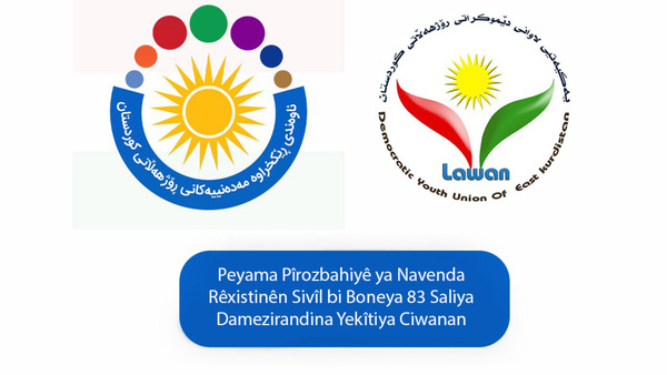 Navenda Rêxistinên Sivîl ên Rojhilatê Kurdistanê bi boneya 83 saliya damezirandina Yekîtiya Ciwanên Demokrat ên Rojhilatê Kurdistanê peyameke pîrozbahiyê belav kir.
