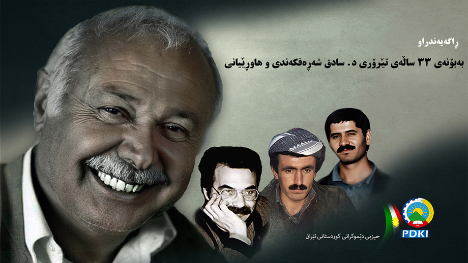 ٣٣ ساڵ بەر لە ئێستا و لە ٢٦ی خەرمانانی ساڵی ١٣٧١ی هەتاویدا، دوکتور سادق شەڕەفکەندی، سکرتێری گشتیی حیزبی دێموکراتی کوردستانی ئێران، وێڕای کاک فەتاح عەبدولی، ئەندامی کۆمیتەی ناوەندی و نوێنەری حیزب لە دەرەوەی وڵات، کاک هومایون ئەردەڵان، نوێنەری حیزب لە وڵاتی ئاڵمان و نووری دێهکوردی، دۆستی حیزب، بە پیلانی پێشوەختە و پلانبۆداڕێژراوی کۆماری ئیسلامیی ئێران لە شاری بێرلین تێرۆر کران.
