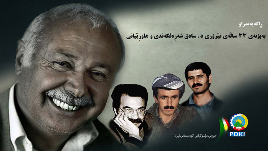 ٣٣ ساڵ بەر لە ئێستا و لە ٢٦ی خەرمانانی ساڵی ١٣٧١ی هەتاویدا، دوکتور سادق شەڕەفکەندی، سکرتێری گشتیی حیزبی دێموکراتی کوردستانی ئێران، وێڕای کاک فەتاح عەبدولی، ئەندامی کۆمیتەی ناوەندی و نوێنەری حیزب لە دەرەوەی وڵات، کاک هومایون ئەردەڵان، نوێنەری حیزب لە وڵاتی ئاڵمان و نووری دێهکوردی، دۆستی حیزب، بە پیلانی پێشوەختە و پلانبۆداڕێژراوی کۆماری ئیسلامیی ئێران لە شاری بێرلین تێرۆر کران.