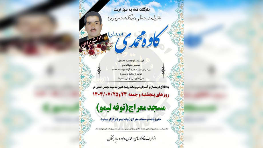 ڕۆژی چوارشەممە ٢٣ی ڕەزبەری ١٤٠٤، پێشمەرگەیەکی پێشووی حیزب بە ناوی کاک کاوە محەممەدی خەڵکی گوندی دەروەرانی مەریوان لە تەمەنی ٥٣ ساڵیدا و بە هۆی نەخۆشییەوە کۆچی دوایی کرد.