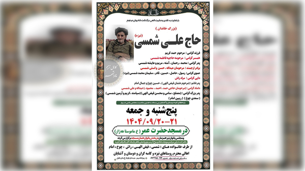 ڕۆژی پێنجشەممە ٢٠ی سەرماوەزی ١٤٠٤، حاجی عەلی شەمسی باوکی شەهید کەریم شەمسی لە شاری پیرانشار کۆچی دوای کرد.