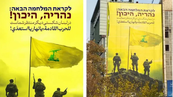 ڕێژیمی تاران لە نوێترین هەوڵەکانی بۆ قەرەبووی شکستە یەک لە دوای یەکەکانی لە بەرانبەر ئیسرائیل، بە هەڵواسینی وێنەیەکی گەورە لە گۆڕەپانی فەلەستین لە تاران کە تێیدا وێنەی چەکدارانی حیزبوڵڵا و هێمای ئەو گرووپەی تێدایە، هەڕەشەی لە ئیسرائیل کردووە.