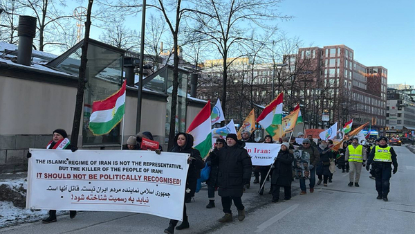 دواتر خۆپێشاندەران بە دروشمدان بۆ مەحکوومکردنی جینایەتیی ئەم دواییانەی ڕێژیم و پشتیوانی لە زیندانییانی سیاسی بە ڕێپێوان بەرەو بینای وەزارەتی دەرەوەی وڵاتی سوید بەڕێ كەوتن.