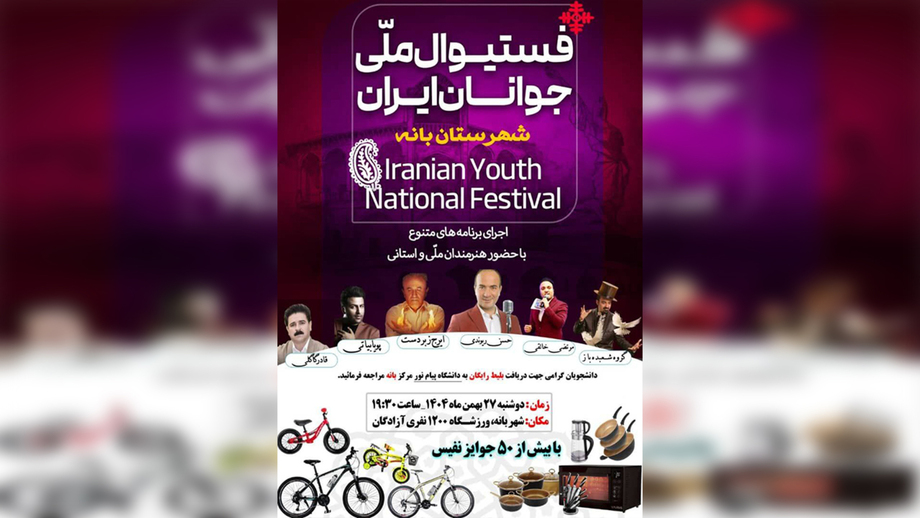 ئەم فێستیڤاڵە بڕیارە سبەی دووشەممە ٢٧ی ڕێبەندان لە ساڵۆنی ئازادگانی شاری بانە بەڕێوە بچێت و ڕێژیم بە خۆڕاییکردنی بەشدارییەکە و دابەشکردنی خەڵات خەریکی ڕاکێشانی خەڵک بۆ ڕێوڕەسمێکی حکوومەتی لە بەرەبەری چلەی شەهیدەکانی خۆپیشاندانەکانی ئەم دواییانەی ئێرانە و کوردستانە.