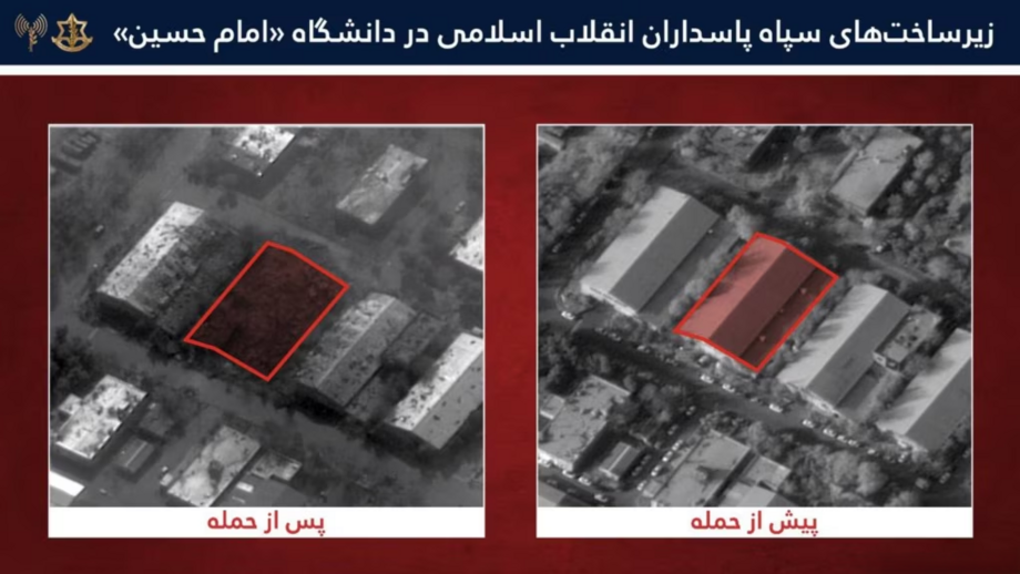بە وتەی ئەرتەشی ئیسرائیل، ئەم هێرشە ڕۆژی دووشەممە ١٠ی خاکەلێوە ئەنجام دراوە و یەکێک لە ژێرخانە سەرەکییەکانی ناو کۆمەڵگەی زانکۆی "ئیمام حسێن"ی کردووەتە ئامانج.