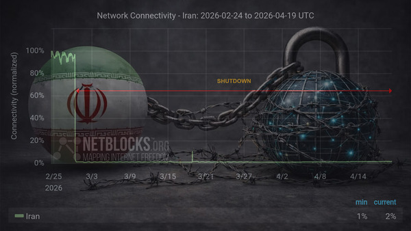 دامەزراوەی "نێت بلاکس" ڕۆژی یەکشەممە ٣٠ی خاکەلێوە، نوێترین ئامارەکانی بڵاوکردەوە. بەپێی ئەم ڕاپۆرتە، پچڕانی ئینتێرنێت لە ئێران لە ١٢٠٠ کاتژمێر تێپەڕیوە و ئەمەش وەک "دیاردەیەکی نائاسایی لە هەموو جیهاندا" پێناسە کراوە.