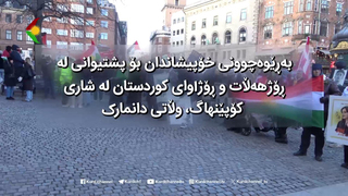 بەڕێوەچوونی خۆپیشاندان بۆ پشتیوانی لە ڕۆژهەڵات و ڕۆژاوای کوردستان لە شاری کۆپێنهاگ، وڵاتی دانمارک